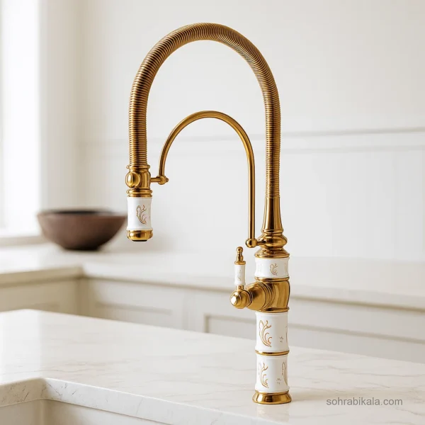 شیر آشپزخانه کسری مدل توکیو سفید طلایی