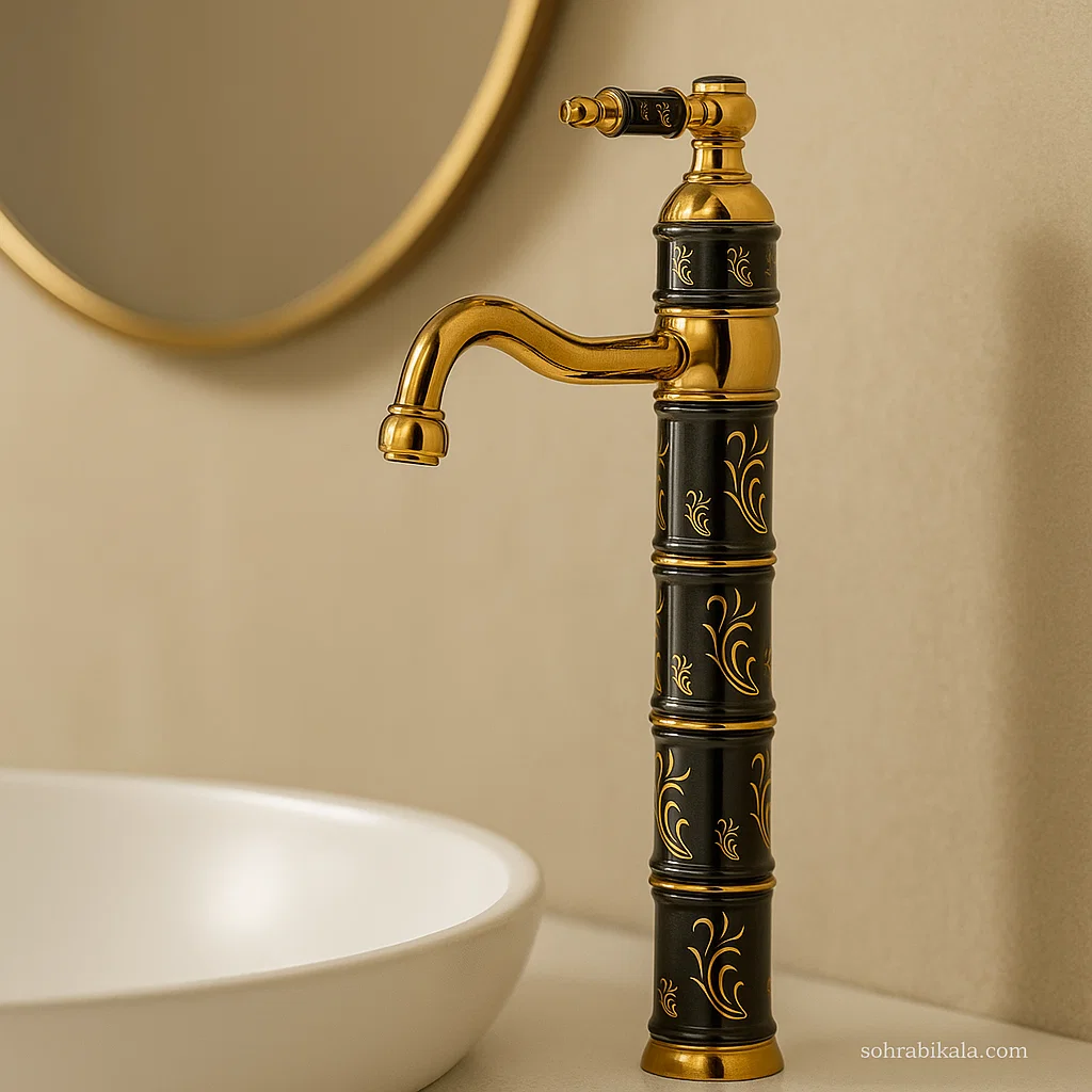 شیر روشویی بلند کسری مدل توکیو مشکی طلایی