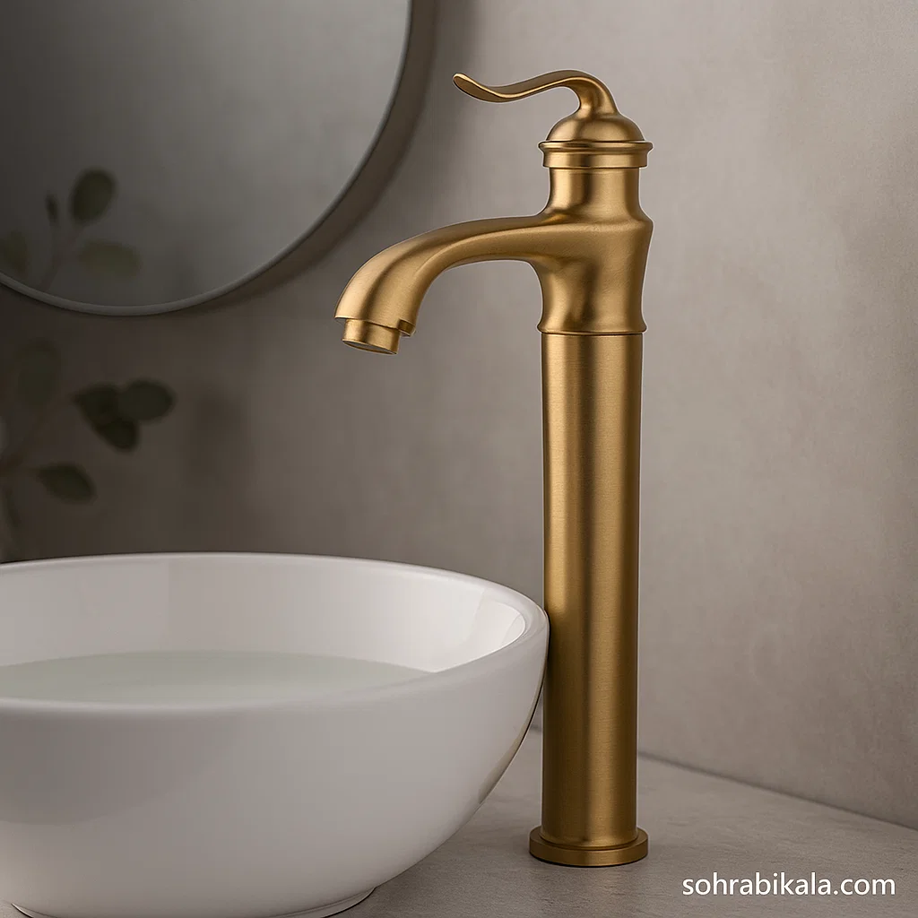 شیر روشویی بلند کسری مدل دانوب طلا مات