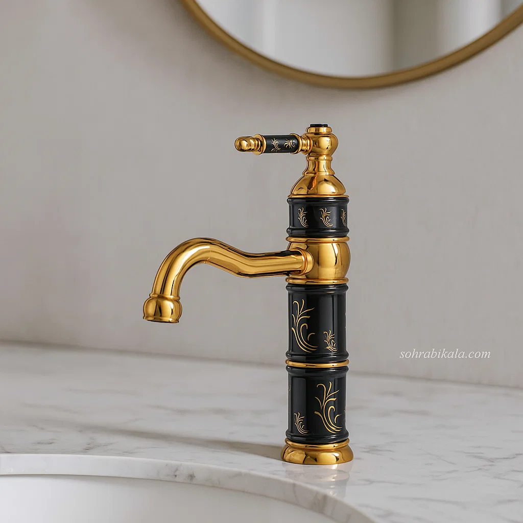 شیر روشویی کسری مدل توکیو مشکی طلایی