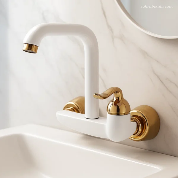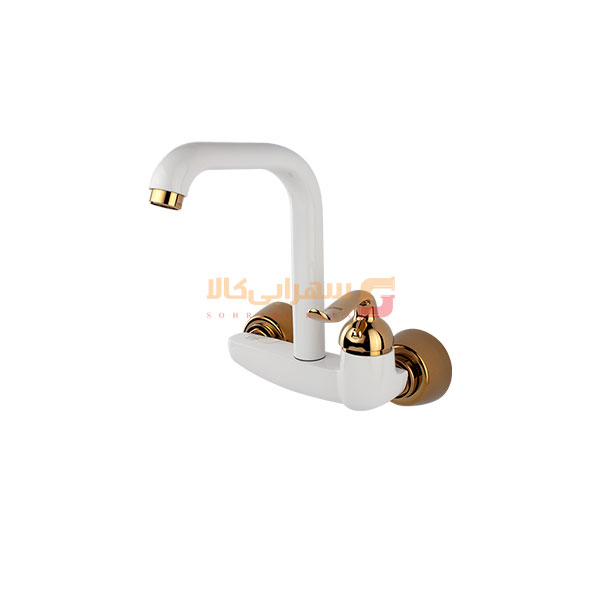 شیر آشپزخانه دیواری کسری مدل هارمونی سفید طلایی
