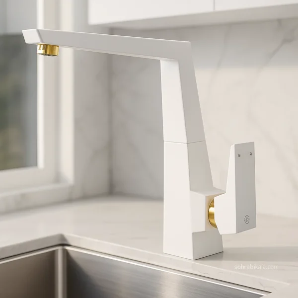 شیر آشپزخانه کسری مدل کنکورد سفید طلایی