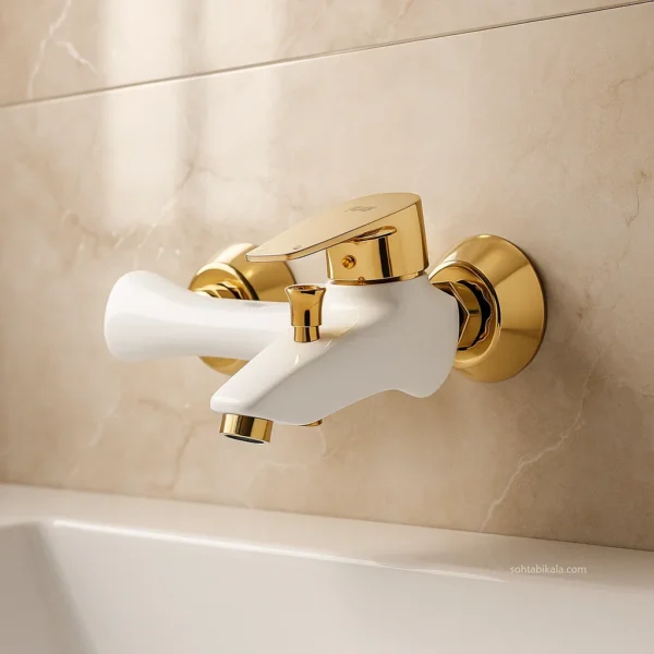 شیر حمام کسری مدل الیزابت سفید طلایی